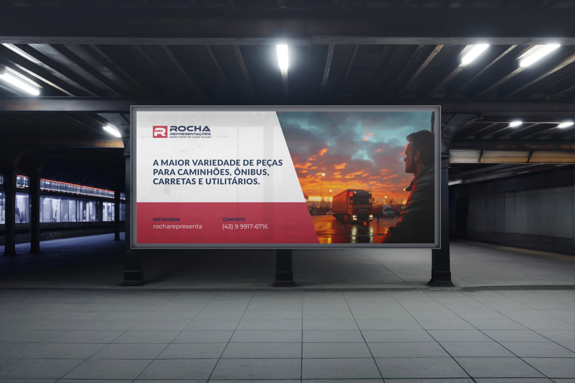 Iniciamos com um levantamento detalhado sobre o mercado de autopeças pesadas e agrícolas, analisando concorrentes e referências de comunicação no setor. O objetivo foi identificar como transmitir a credibilidade da Rocha Representações de forma moderna e digital, valorizando também as indústrias parceiras que ela representa.